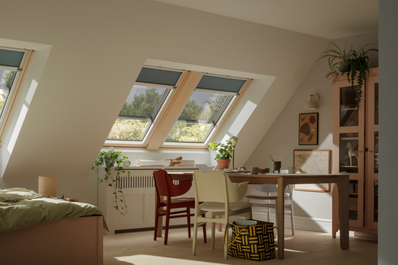 Daglicht is niet alleen een bron van energie, maar ook van sfeer. Lichtdoorlatende plisségordijnen zorgen voor een zachte inval, ideaal voor de woonkamer, terwijl verduisterende rolgordijnen in de slaapkamer voor een diepe nachtrust zorgen. Met VELUX ACTIVE passen ramen en zonwering zich automatisch aan het binnenklimaat aan – handig voor wie comfort wil combineren met energie-efficiëntie.