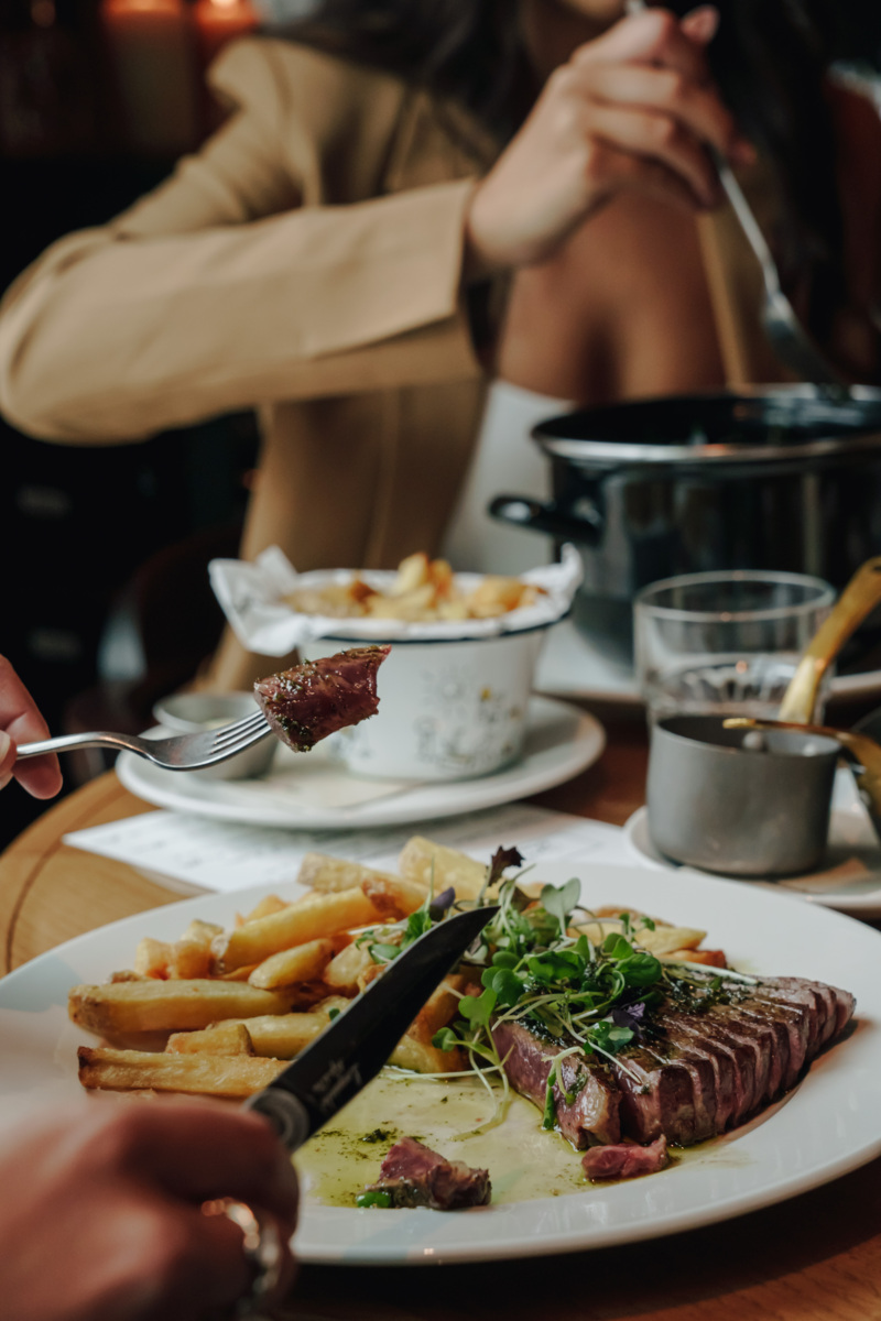 De bistro is ingericht als een informele huiskamer met Franse referenties. Handgeschreven menu’s, zacht kaarslicht en uitzicht op de feestverlichting van de stad bepalen de setting. De ruimte is geschikt voor zowel kleinere gezelschappen als grotere groepen, zonder formeel aan te voelen.