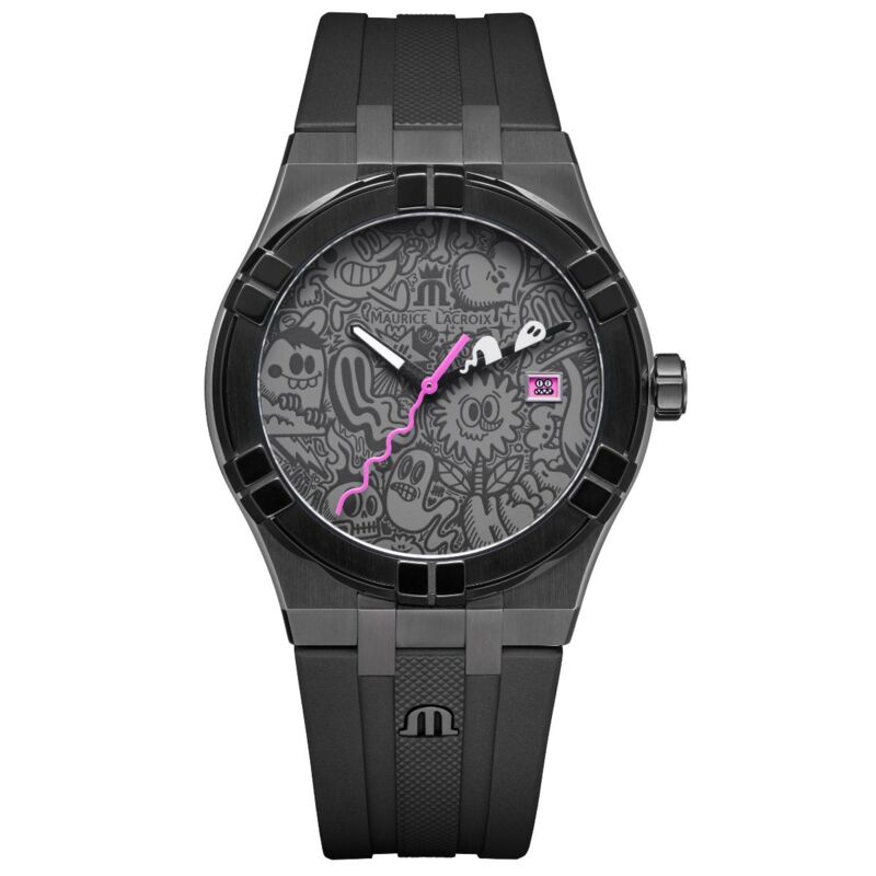 De AIKON Quartz Wotto Limited Edition, het resultaat van een voortdurende samenwerking tussen de Zwitserse horlogefabrikant Maurice Lacroix en de Britse kunstenaar Wotto (Craig Watkins), transformeert de pols tot een draagbaar kunstobject.
