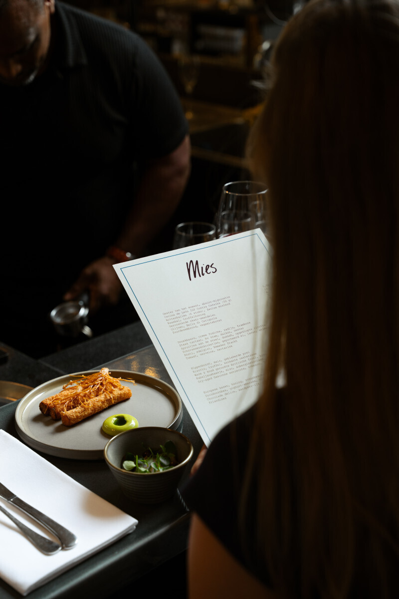 Onder leiding van chef Lucas Jeffries serveert MIES van woensdag t/m zaterdag een à la carte menu en een chefs menu van drie tot vijf gangen. Op zondag staat een uitgebreide family lunch centraal. De keuken geeft een moderne draai aan Nederlandse klassiekers, met ingrediënten van lokale leveranciers en aandacht voor de seizoenen. Van zondag t/m dinsdag is MIES geopend voor ontbijt en lunch. ’s Avonds bruist de bar met een kaart vol karaktervolle bites, cocktails en een dagelijks wisselende daghap. Daarnaast is er ruimte voor events, workshops en lezingen, waarbij gastronomie en community hand in hand gaan.