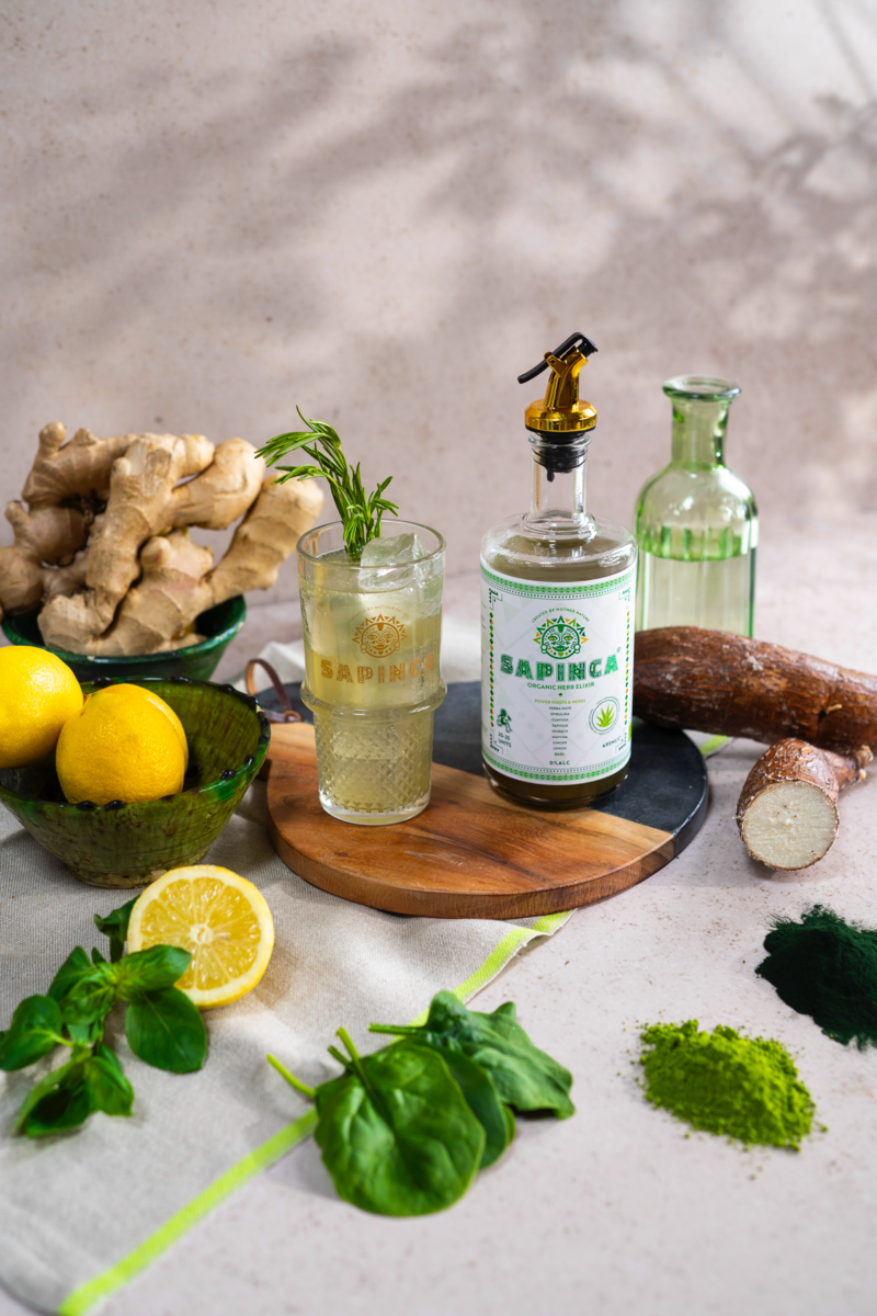 Sapinca introduceert Sapinca de Organic Herb Elixir, een krachtige, opvallend groene limited edition drank op basis van wortels, kruiden, planten en vruchten. De blend is zorgvuldig samengesteld en combineert de natuurlijke kracht van botanische ingrediënten met eeuwenoude tradities en kennis van het plantenrijk. Net als de eerdere varianten – Root en Fruit –is ook deze nieuwe creatie biologisch, vegan, 100% natuurlijk en alcoholvrij!