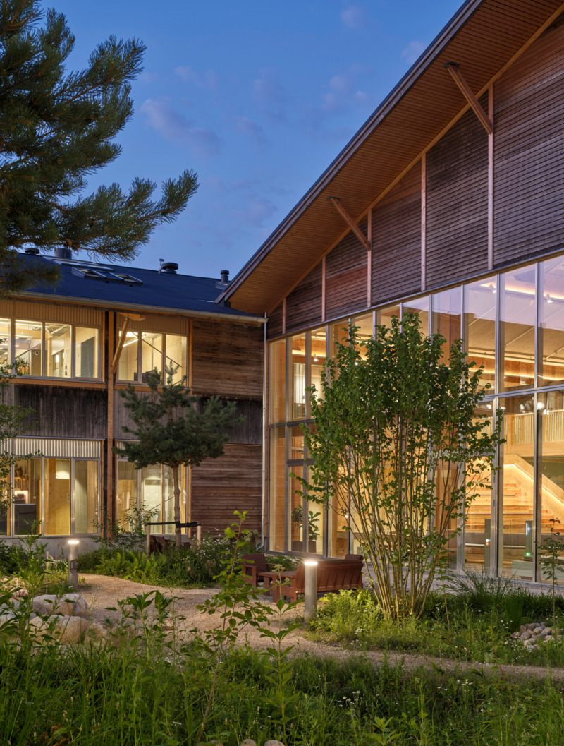 Het ontwerp, van de hand van Praksis Arkitekter, combineert hout, glas en natuurlijke lichtinval tot een inspirerende werkruimte. Meer dan 400 dakramen zorgen voor overvloedig daglicht en frisse lucht, terwijl binnenplaatsen en werkplekken met uitzicht op de natuur het welzijn en de creativiteit van medewerkers bevorderen. Het complex ligt naast Nature Østbirk, een 70.000 m² groot recreatiebos dat eigendom is van VELUX en publiek toegankelijk blijft.