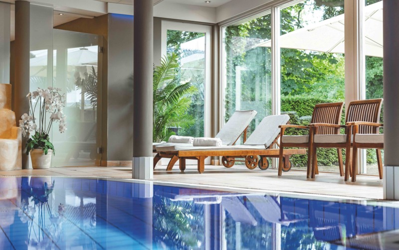 Dankzij Strikkers uitbreidingen ligt het hotel inmiddels op een ruim vijf hectare groot landgoed met eigen kas, botanische kruidentuin en meerdere kunstwerken, waaronder een monumentale cirkel van Bentheimer zandsteen, de ‘Twentse Stonehenge’. Fraaie wandel- en fietsroutes brengen gasten langs verborgen pareltjes zoals het Lutterzand, kasteel Singraven en het pittoreske kunststadje Ootmarsum. Voor wie zich liever laat verwennen, biedt De Bloemenbeek een uitgebreide wellness met een heerlijk verwarmd binnenzwembad, sauna’s, tepidarium en een schoonheidssalon. ‘In 1977 waren wij het eerste hotel in Twente met een overdekt zwembad. Inmiddels hebben we een prachtige spa, waar gasten echt tot rust kunnen komen na een lange wandeling in de natuur.’