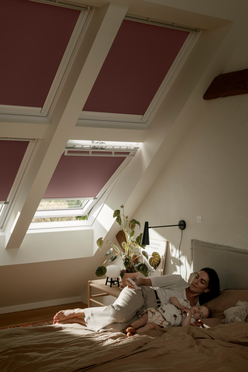 Daglicht is niet alleen een bron van energie, maar ook van sfeer. Lichtdoorlatende plisségordijnen zorgen voor een zachte inval, ideaal voor de woonkamer, terwijl verduisterende rolgordijnen in de slaapkamer voor een diepe nachtrust zorgen. Met VELUX ACTIVE passen ramen en zonwering zich automatisch aan het binnenklimaat aan – handig voor wie comfort wil combineren met energie-efficiëntie.