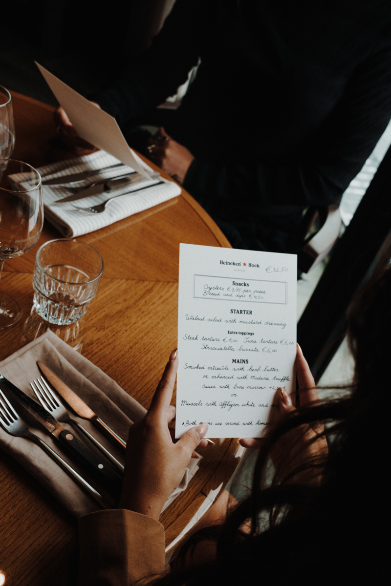 Nog tot en met 11 januari serveert Heineken Hoek Bistro een vast tweegangenmenu voor 44,50 euro. De maaltijd start met een walnotensalade, gevolgd door een hoofdgerecht naar keuze. Gnocchi en dessert zijn optioneel toe te voegen. Een van de winterklassiekers op de kaart is de Beef Wellington met rode wijnjus.