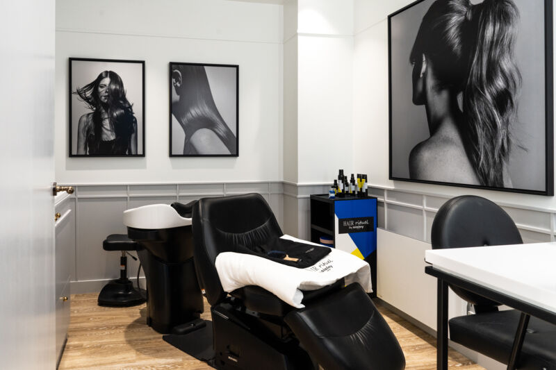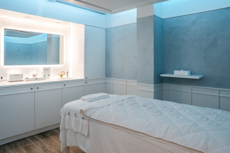 Een aparte zone is gewijd aan Hair Rituel by Sisley, met persoonlijke haardiagnoses en op maat gemaakte verzorgingsadviezen. Achterin het Maison bevinden zich twee exclusieve cabines voor behandelingen. De eerste richt zich op haar en hoofdhuid, met onder meer de intensieve Le Grand Soin Cheveux Régénérant. Deze 90-minutenbehandeling combineert krachtige formules met Shiatsu-technieken voor sterker haar en totale ontspanning. De tweede cabine is ingericht voor gezichts- en lichaamsverzorging: een serene plek met verlichte ginkgoblaadjes en fotografie van Philippe Bourseiller, ontworpen voor diepe rust en directe huidverbetering.