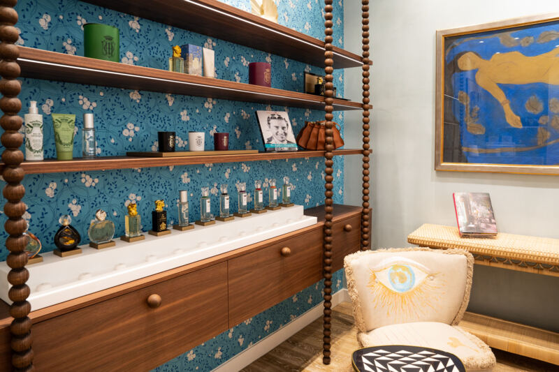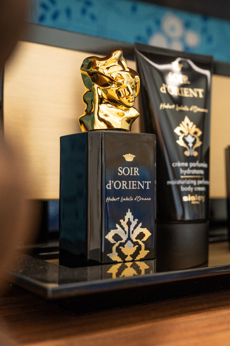 Het interieur weerspiegelt Sisley’s kenmerkende esthetiek: pastelkleurige bloemmotieven, gouden ginkgobladsculpturen en kunstwerken van Pierre Boncompain en Elzbieta Radziwill. Centraal in de ruimte staat een uitnodigende tafel voor masterclasses, waar experts bezoekers begeleiden in het vinden van de juiste producten. In de salon kunnen gasten Sisley’s parfumcollecties ontdekken in een setting die kunst en lifestyle samenbrengt.