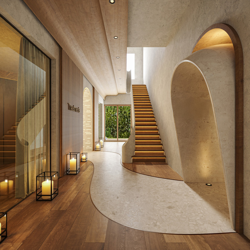 De architectuur van OYSANA volgt het principe ‘vorm volgt energiestroom’. Ronde, organische vormen creëren rust, geborgenheid en harmonie. Materialen zoals Kunrader kalksteen, eikenhout en klei brengen authenticiteit, terwijl het eigen bronwater centraal staat in design én behandeling. De spa omvat o.a. een Finse sauna, biosauna, stoomcabine, koudwaterwaterval, dompelbad en een groene spatuin die de natuur letterlijk naar binnen haalt.