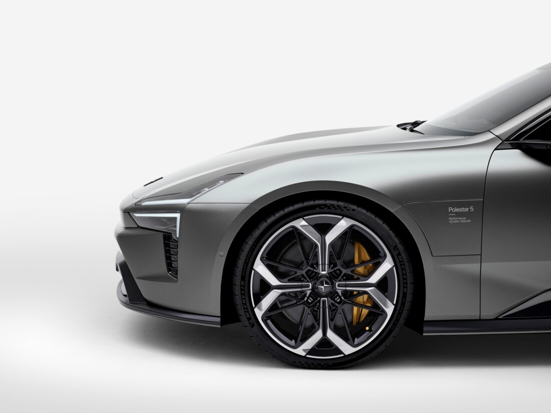 De Polestar 5 is een vijf meter lange Grand Tourer met aerodynamische lijnen, een vleugelachtig profiel en een Cw-waarde van slechts 0,24. Kenmerken zijn de Dual-blade Pixel LED-koplampen, het panoramische glazen dak van ruim twee meter en een minimalistisch interieur waarin natuurlijke vezelmaterialen en gerecycled PET de hoofdrol spelen.