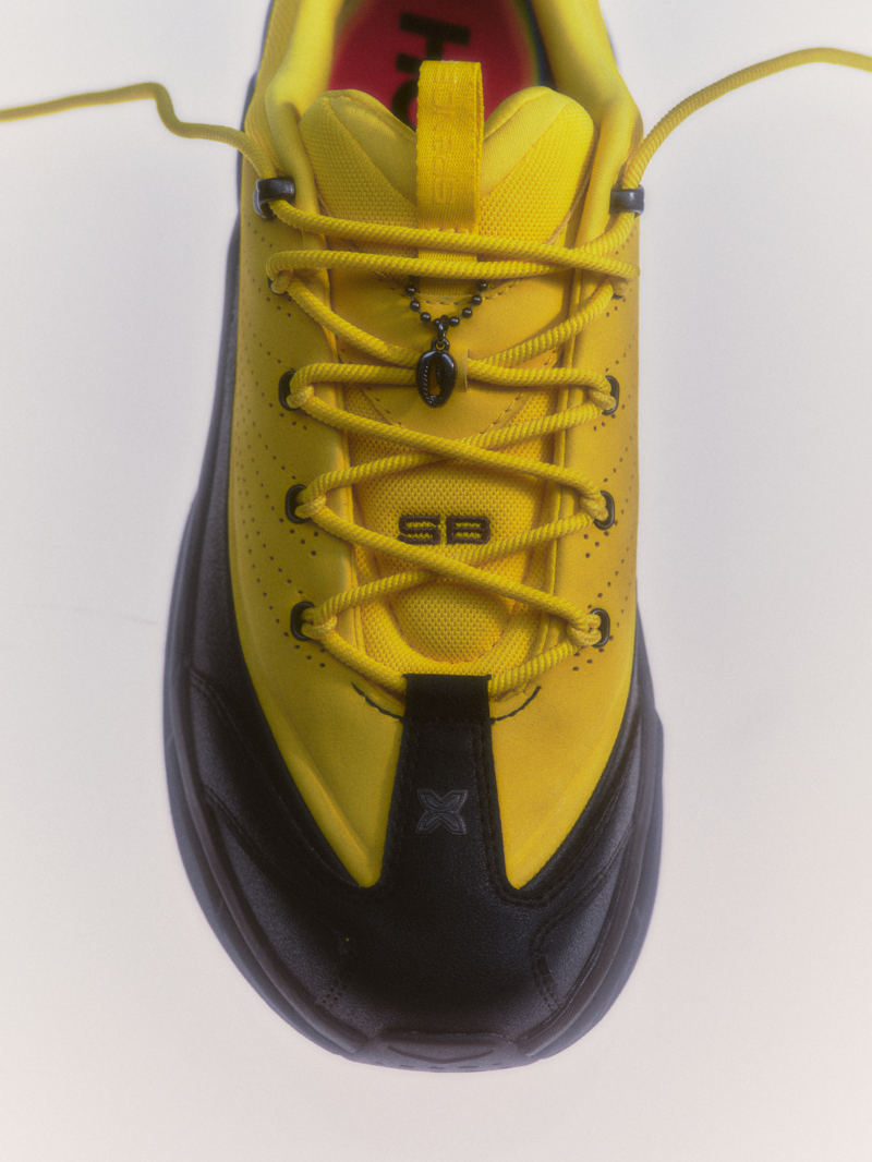 De Spencer Badu Elevon X is uitgevoerd in een gedurfde gele kleur met verfijnde, symbolische details die verwijzen naar Badu’s Ghanese afkomst. De sneaker bevat onder meer: